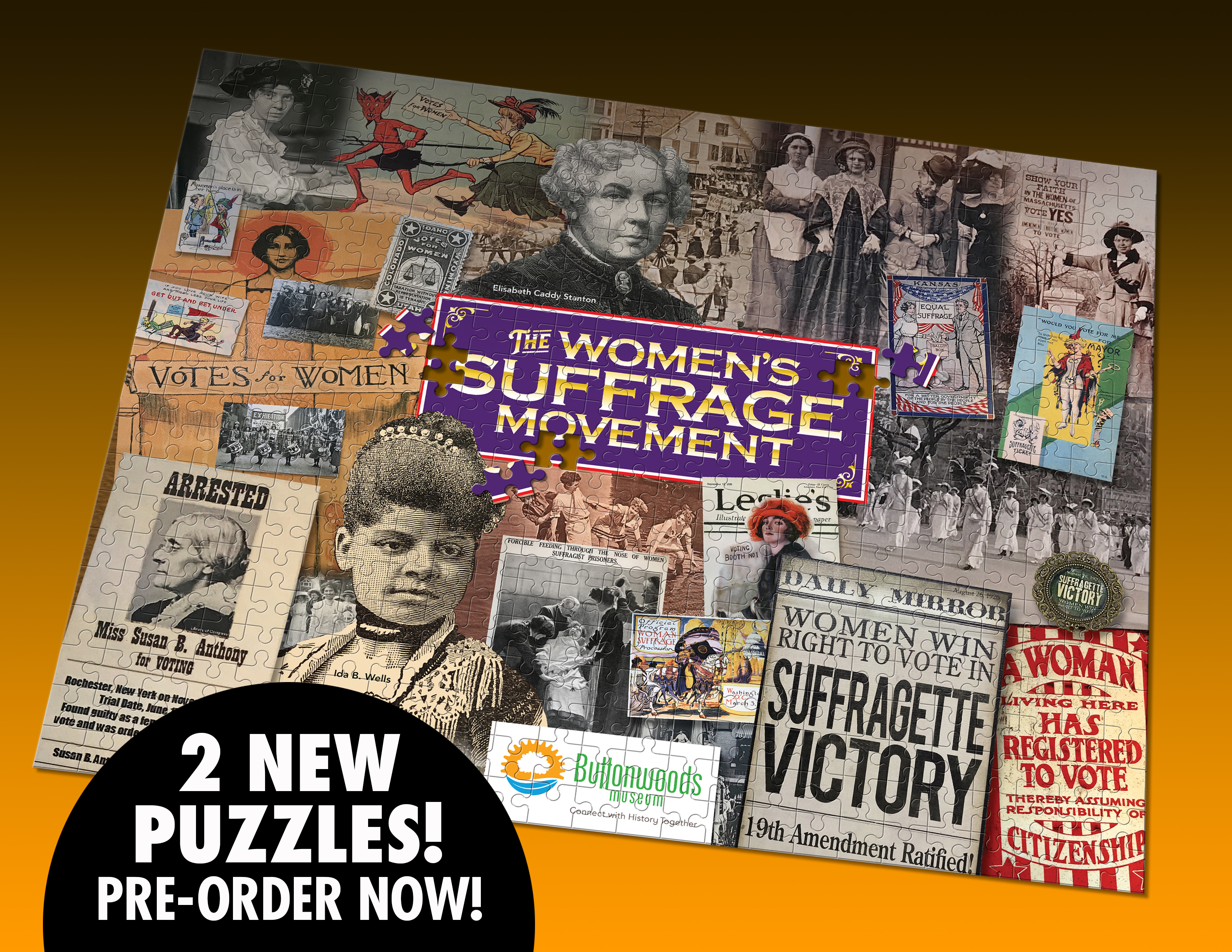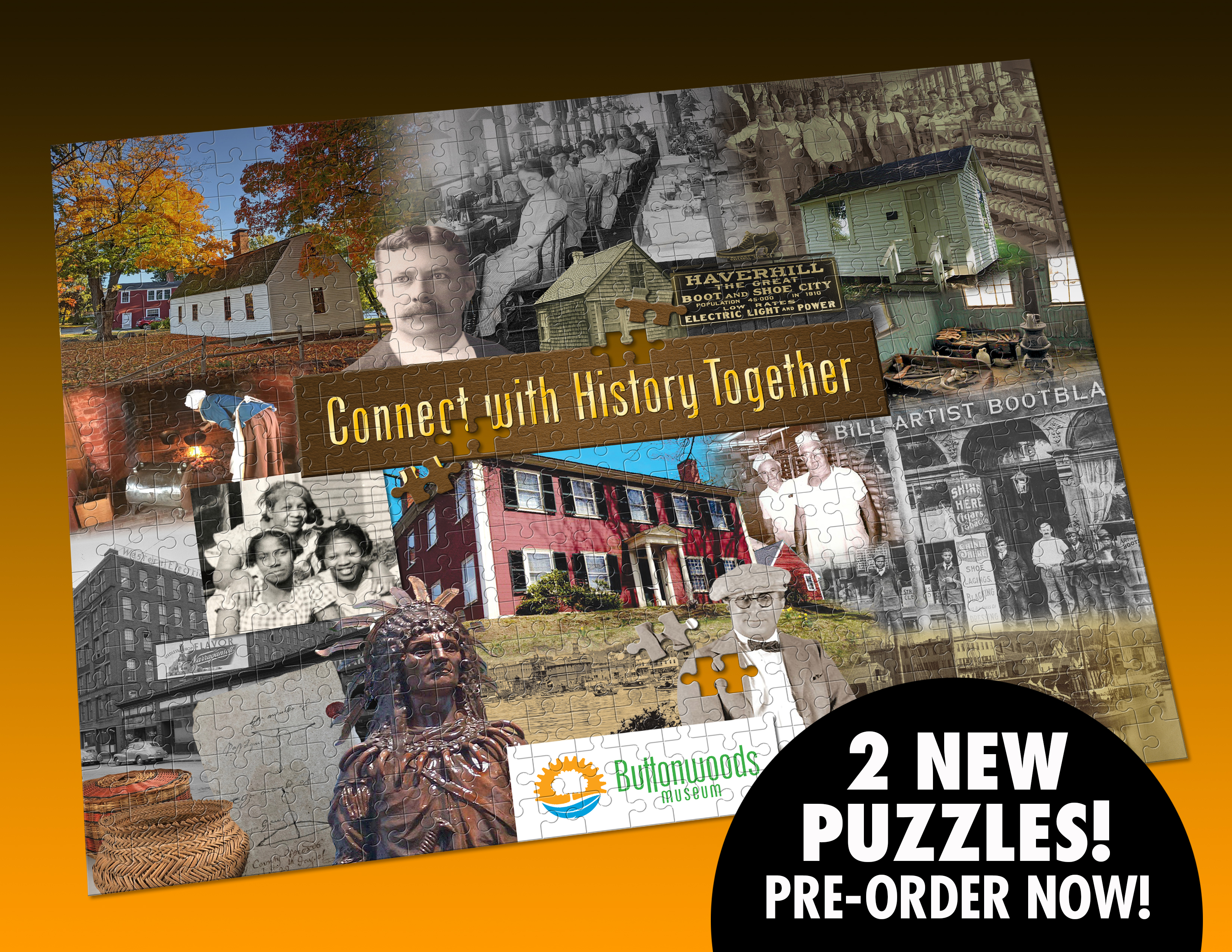 New puzzles with new designs are here now! Order your puzzle of The Buttonwoods Museum, The Women's Suffrage Movement or better yet, order both! The puzzles are 16" X 20" and 504 pieces.